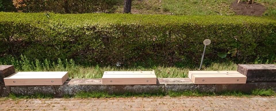 地元の木材を用いて、ボランティアやセミプロ、地元の業者さんを活用して作成するベンチを「地域産材」であることを売りとして自治体などに購入して貰う。